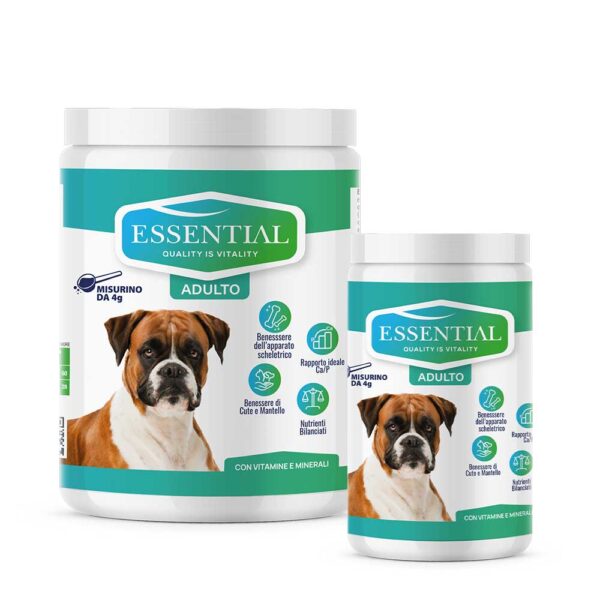 ESSENTIAL Cane Adulto è l’alimento complementare, essenziale per l’integrazione della dieta casalinga, a eliminazione, o BARF senza ossa del cane adulto. Contiene vitamine, macroelementi e oligoelementi minerali, normalmente carenti nelle diete casalinghe. I nutrienti antiossidanti supportano il sistema immunitario; il corretto rapporto calcio, fosforo e la vitamina D contribuiscono al benessere dell’apparato scheletrico, evitando i rischi di carenze o di possibili eccessi. Ad elevata tollerabilità, poiché è formulato senza fonti proteiche aggiunte.
